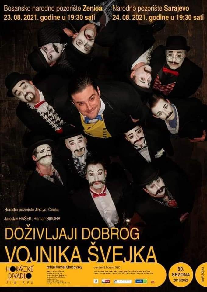 Češki „Doživljaji dobrog vojnika Švejka“ na sceni zeničkog BNP-a- Predstava „Doživljaji dobrog vojnika Švejka“ Horačkog pozorišta Jihlava u ponedjeljak, 23. augusta u 19.30 sati gostuje u Bosanskom narodnom pozorištu Zenica. Gostovanje se održava pod pokroviteljstvom Ambasade Republike Češke u Bosni i Hercegovini. Predstava će biti izvedena na češkom jeziku uz titlovani prijevod na bosanski jezik.