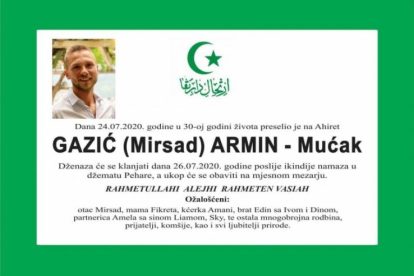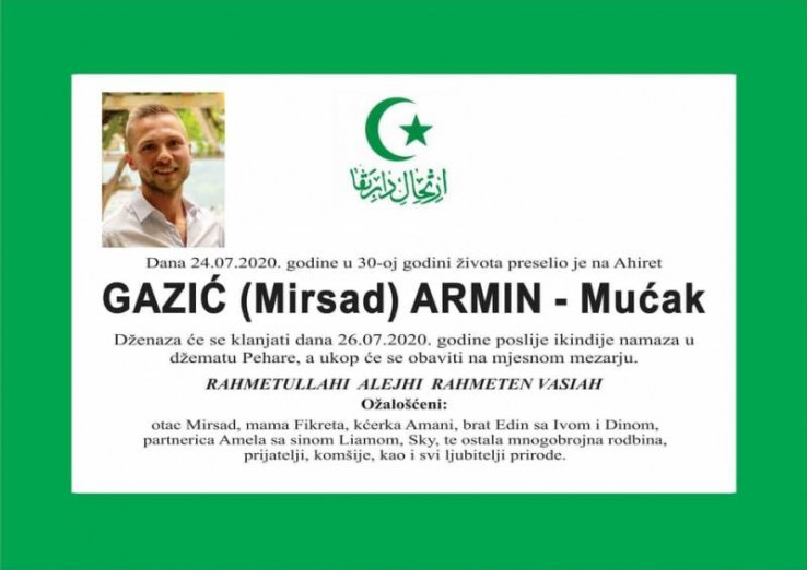 Danas se navršava četiri godine od prerane i iznenadne smrti našeg sugrađanina, alpiniste, zaljubljenika u planine, prirodu i sport, Armina Gazića.