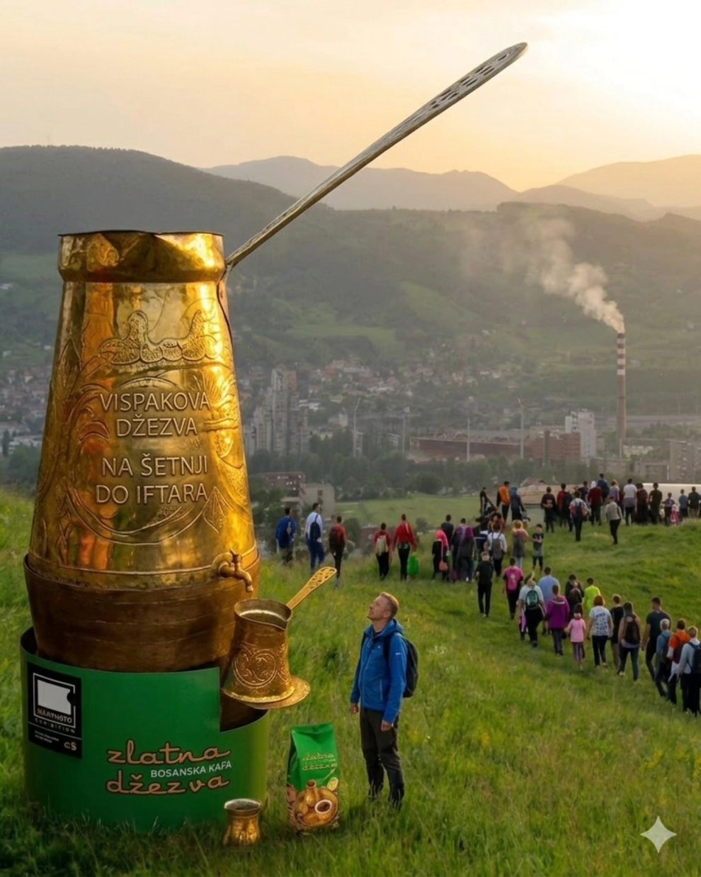 ☕ Specijalna nam je gošća Četvrte Šetnje do iftara 2026: Hamida, po Ginisovoj knjizi rekorda, najveća na svijetu, čuvena “Vispakova džezva” koja će učesnicima naše ture donijeti novo iskustvo ispijanja iftarske “Zlatne džezve” na Hamidi, uz pogled na Zenicu.