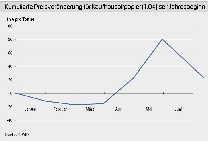 Kao što je se i očekivalo, cijene ambalažnih sirovina na europskom i njemačkom tržištu, posebno otpadnog papira su od lipnja u slobodnom padu. Nakon lockdown-a velike količine prikupljene ambalaže nisu naišle na mogućnost prodaje kod kupaca prerađivača. Istovremeno, zbog ograničenih izvoznih mogućnosti na Daleki istok posebno Kine, velike količine otpadnog papira iz susjednih europskih zemalja gurale su se posebno na njemačko tržište.