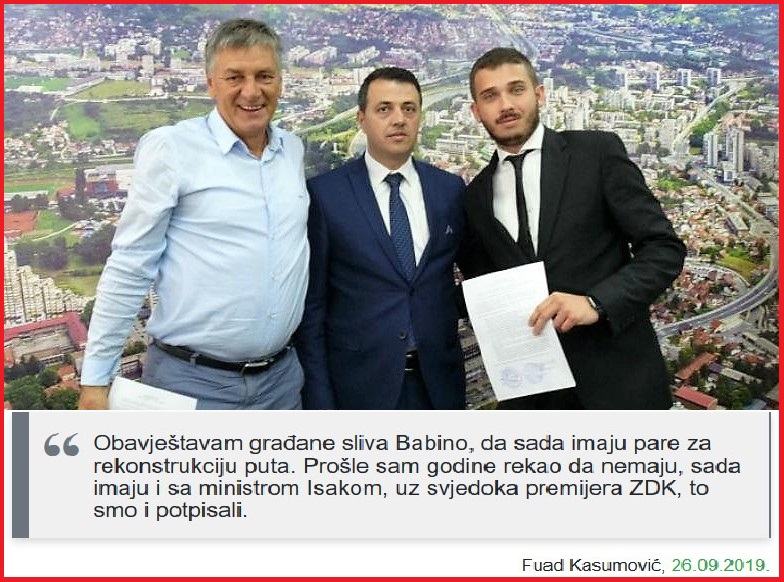 Na ovom području koje je slovilo kao „tvrda“ SDA glasačka baza, Kasumović je bio uspješniji. Babinski sliv ima oko 4700 glasača i jasno je da oni mogu donijeti prevagu na narednim izborima, a za tako nešto treba imati podlogu u „održanim obećanjima“. Zato politički rivali koriste rekonstrukciju puta za političku samopromociju na račun budžetskog novca.