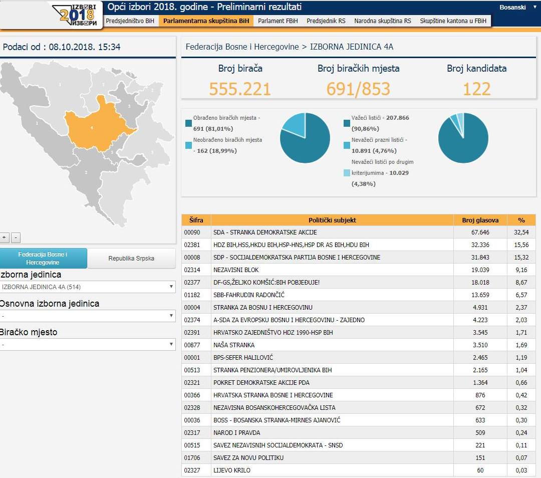 CIK BiH: Izborni rezultati i prebrojani glasovi do ponedjeljka poslijepodne – Centralna izborna komisija je u poslijepodnevnim satima objavila novi “update” podataka za četiri nivoa vlasti, za koje su građani BiH mogli glasati/birati u nedjelju. Pogledajte stanje iz izbornih jedinica u kojima se nalazi naš grad, Zenica, na svim nivoima vlasti.