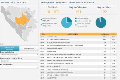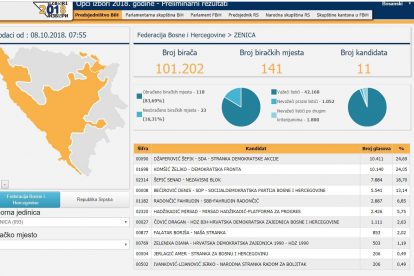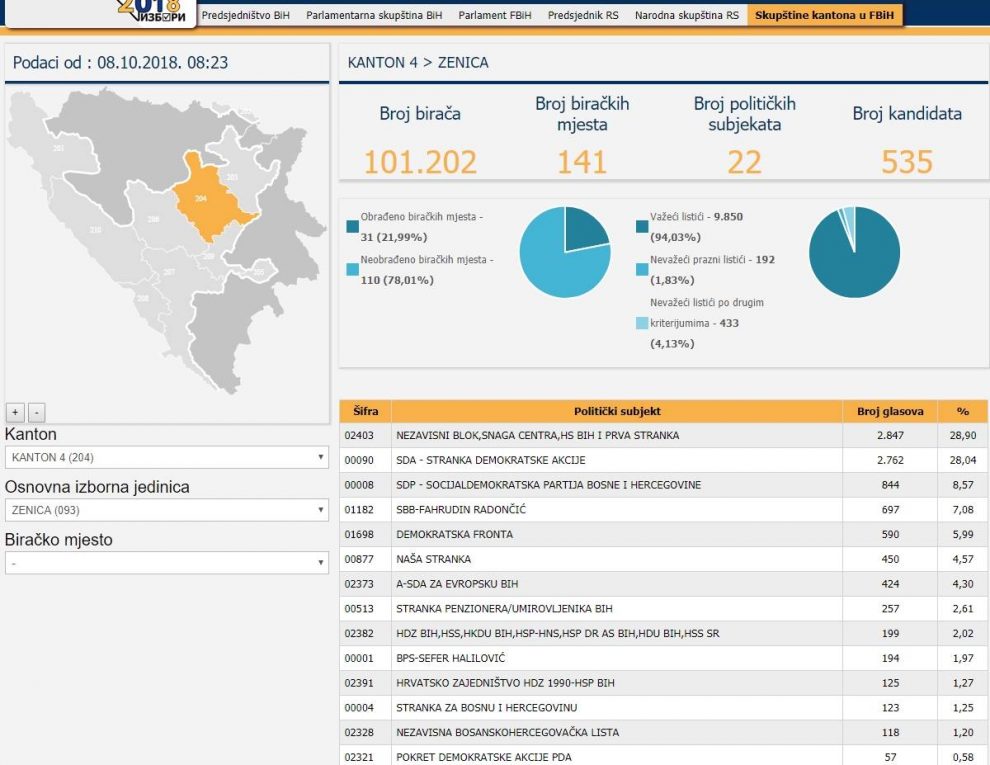 CIK BiH: Pogledajte kako su glasali Zeničani za sve nivoe vlasti – Centralna izborna komisija BiH objavila je preliminarne nepotpune zvanične rezultate za sve nivoe, od Predsjedništva BiH, do kantonalnih skupština. Na oficijelnoj stranici moguće je “izdvojiti” glasove po gradovima, pa vam tako donosimo rezultate kako su glasali upisani u Birački spisak na području Zenice, za sve nivoe vlasti. U gornjem lijevom uglu je navedeno vrijeme kad su ažurirani podaci CIK-a.