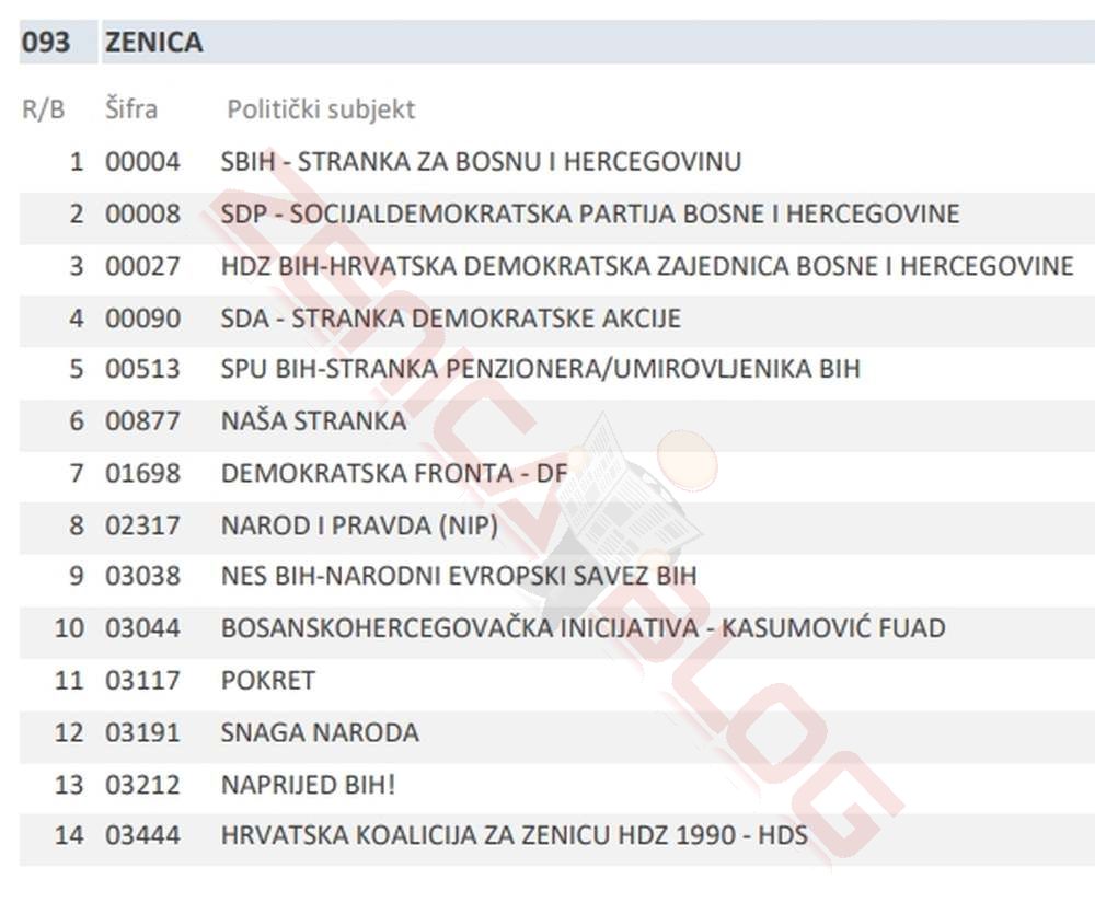 Koje stranke imaju ovjerene liste u Zenici, možete vidjeti u nastavku: