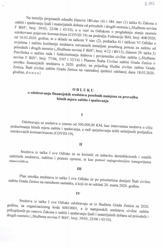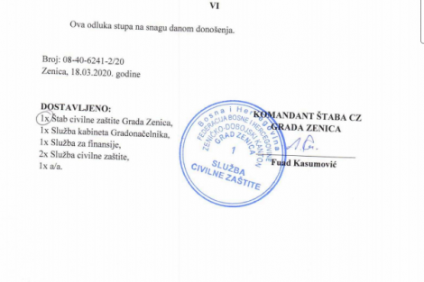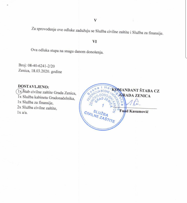 Civilna zaštita Grada Zenica: pola miliona KM za hitne mjere zaštite i spašavanja od koronavirusa – Gradonačelnik Zenice Fuad Kasumović u svojstvu komandanta Štaba civilne zaštite Grada Zenica potpisao je Odluku o odobravanju finansijskih sredstava posebnih namjena za provedbu hitnih mjera zaštite i spašavanja.