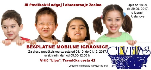 Civitas organizuje mobilne igraonice za djecu predškolskog uzrasta u 2017. godini – Obrazovni centar za demokratiju i ljudska prava CIVITAS i ove godine će podržati rad besplatnih mobilnih igraonica za djecu predškolskog uzrasta u vrtiću „LIPA“, (Travnička cesta br 42.)