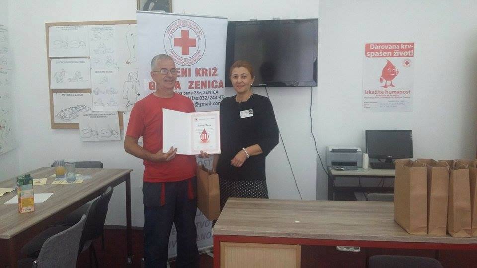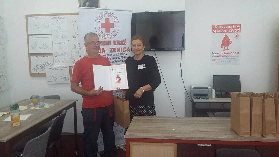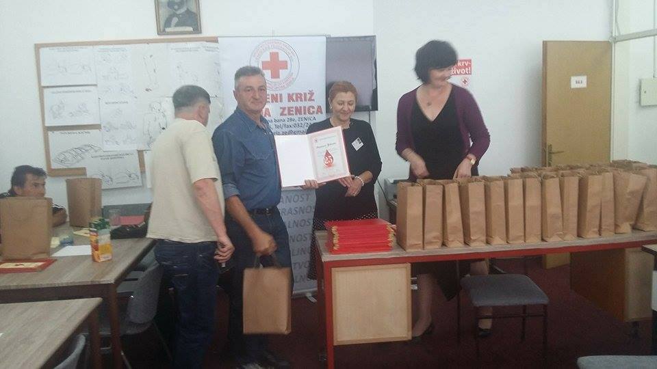 CK Zenica: Zahvalnice za 31 darivaoca krvi – Crveni križ Grada Zenice je obilježio Svjetski dan dobrovoljnih darivalaca krvi – Tom prilikom su uručene Zahvalnice: