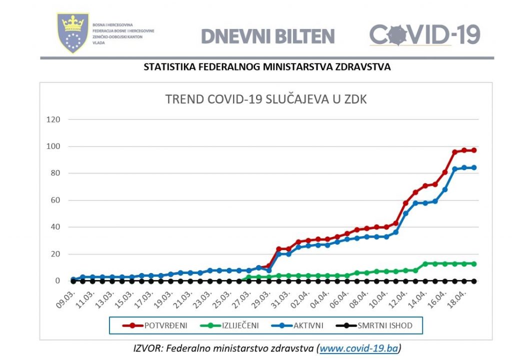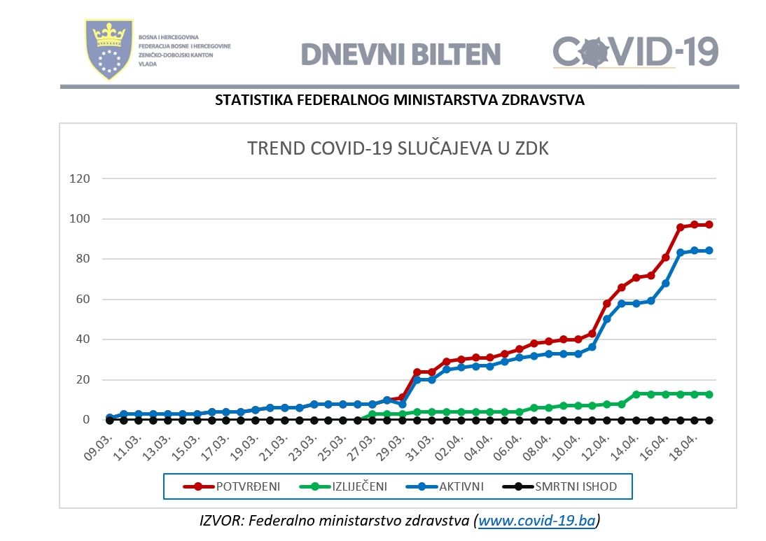 | Pregled stanja COVID-19 infekcije u ZDK za dan 19.04.2020. do 12:00 | ||