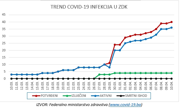 | Pregled stanja COVID-19 infekcije u ZDK za dan 10.04.2020. do 12:00 | ||