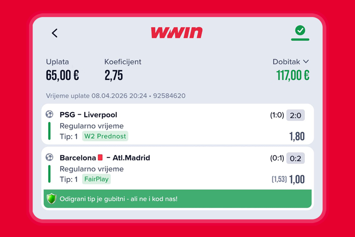 Nova pogodnost za igrače WWIN-a donosi dodatnu sigurnost pri klađenju . Crveni karton vaše ekipe šiti vas od gubitka i osigurava da vaš tiket ostane zaštićen do kraja utakmice.