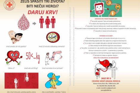 Crveni križ Grada Zenica tekuću godinu završava akcijom darivanja krvi koja će biti organizovana sutra 23. 12. 2022. godine (petak) od 8 do 13h u prostorijama Transfuzijskog centra Kantonalne bolnice Zenica.