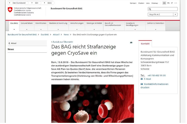 Kako navodi Savezni ured za javno zdravstvo Švicarske (BAG), prema podacima kompanije CryoSave, matične ćelije koje su čuvali pohranjene su u Poljskoj, ali vlasti nisu uspjele stupiti u kontakt s nadležnima tih firmi. U toku je istraga. Lanac propusta u radu ove kompanije uočio je jedan roditelj koji nije mogao da iskoristi matične ćelije svog djeteta zbog problema koje je kompanija imala.