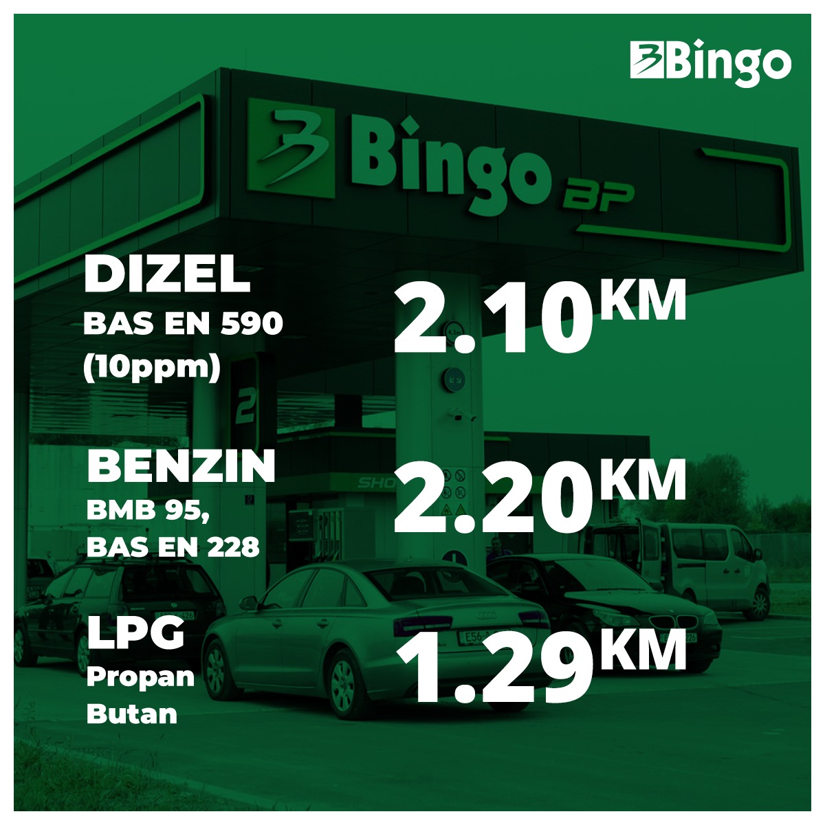 Na aplikaciji Federalnog ministarstva trgovine “FMT FBiH Oil info” jasno je vidljivo da su cijene goriva na Bingo pumpama najniže – trenutno je dizel 2,10 KM, a benzin 2,20 KM po litru. Na drugim pumpama cijene se kreću i do 2,46 KM za benzin 95 premium te 2,71 KM za benzin super 98.