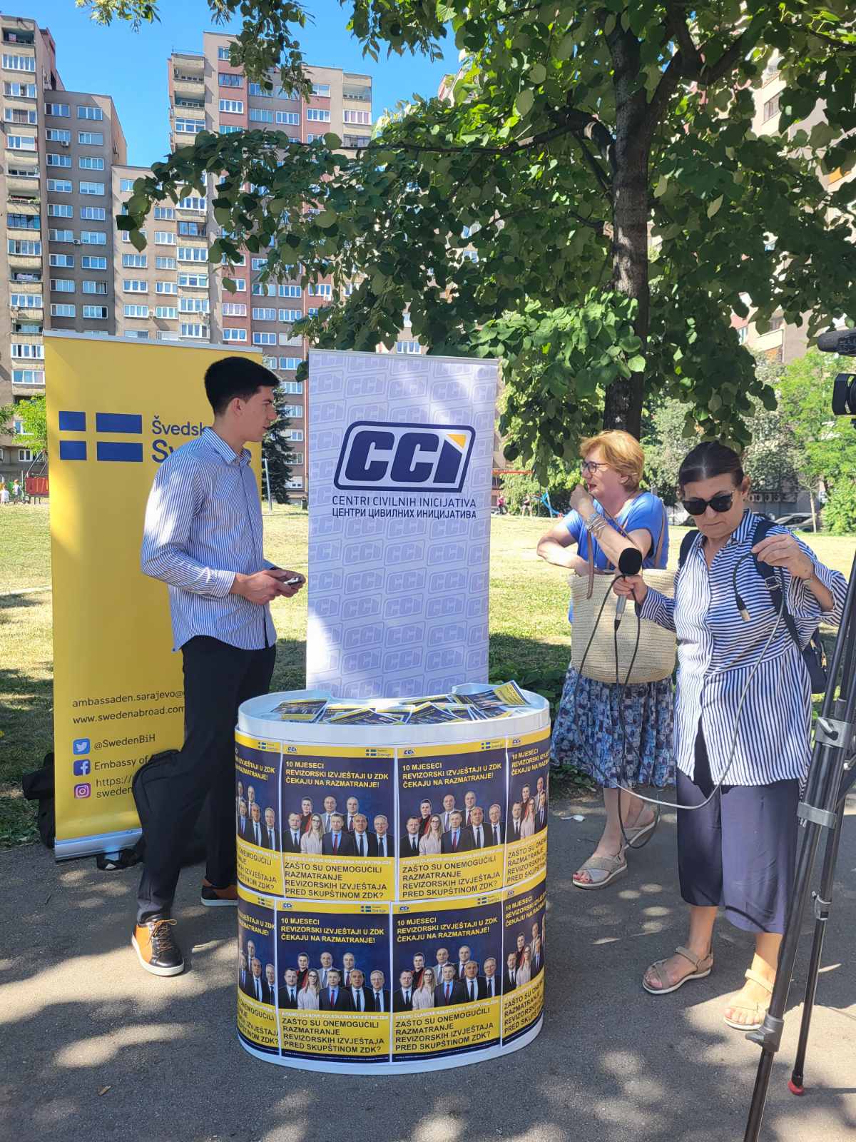 Centri civilnih inicijativa (CCI) su danas u Zenici održali uličnu akciju s ciljem informisanja građana o važnosti revizorskih izvještaja i negativnog odnosa koji Skupština ZDK ima prema istima. Naime, Kolegijum Skupštine ZDK je za prethodnih 10 mjeseci, od kako su revizorski izvještaji za Budžet ZDK, ZZO ZDK i Ministarstvo za privredu ZDK.objavljeni, 4 puta odbio stavljanje istih na Dnevni red Skupštine ZDK. Na taj način je onemogućeno razmatranje ovih izvještaja pred najvišim zakonodavnim tijelom u Kantonu.