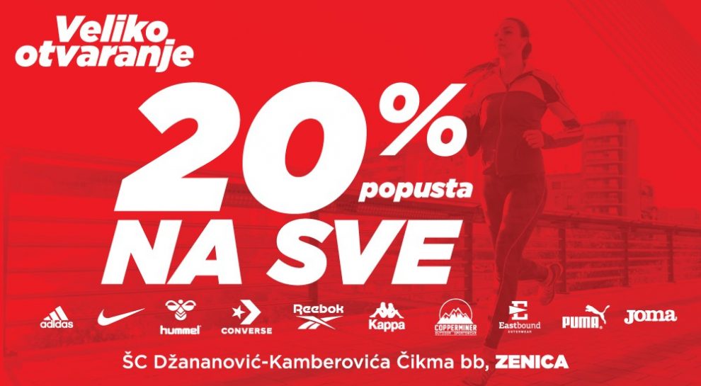 Zenica će od 01.07. biti bogatija za novu radnju sportske opreme, na adresi Kamberovića Čikma bb, ŠC Džananović, u novoj radnji, koju otvara Đak Sport, jedan od najvećih regionalnih multibrend lanaca sportske opreme, kupci će moći da pronađu modele iz najnovijih kolekcija dobro poznatih sportskih brendova kao što su: Nike, Adidas, Hummel, Kappa, Reebok, Puma, Converse, Skechers, Copperminer, EastBound i drugi.