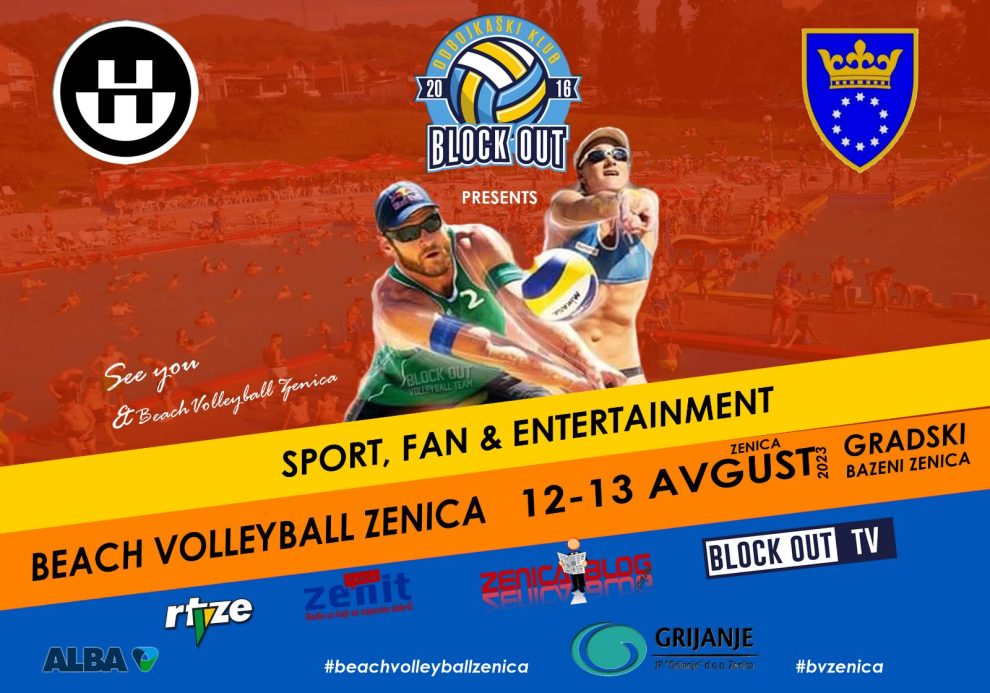 Odbojkaški klub BLOCK OUT Zenica za samo pet godina svog postojanja vratio je mušku i žensku omladinsku i seniorsku odbojku u Grad Zenicu, organizuje četvrti po redu “Beach Volleyball Zenica” na pješčanim terenima Bazena Zenica 12. i 13. augusta, do sad neviđeni sportsko-zabavni spektakl, turnir u odbojci na pijesku, vrhunski odbojkaški mečevi, DJevi, odlična organizacija, zagarantiran užitak u sportu i odlična zabava – ne propustite “Beach Volleyball Zenica 2023” 12. i 13. augusta Gradski Bazeni Zenica.