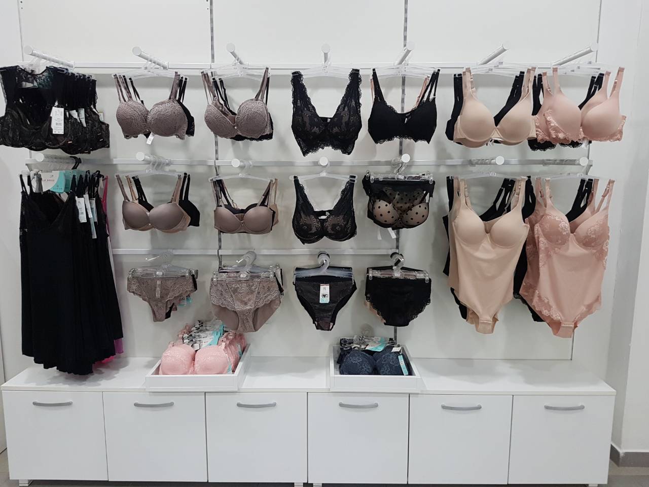 Odlikuje nas veliki izbor grudnjaka svih veličina (dubina košarice od A do G), gaćica, steznjaka, potkošulja od organskih materijala, bodija sa steznjacima i još mnogo toga.