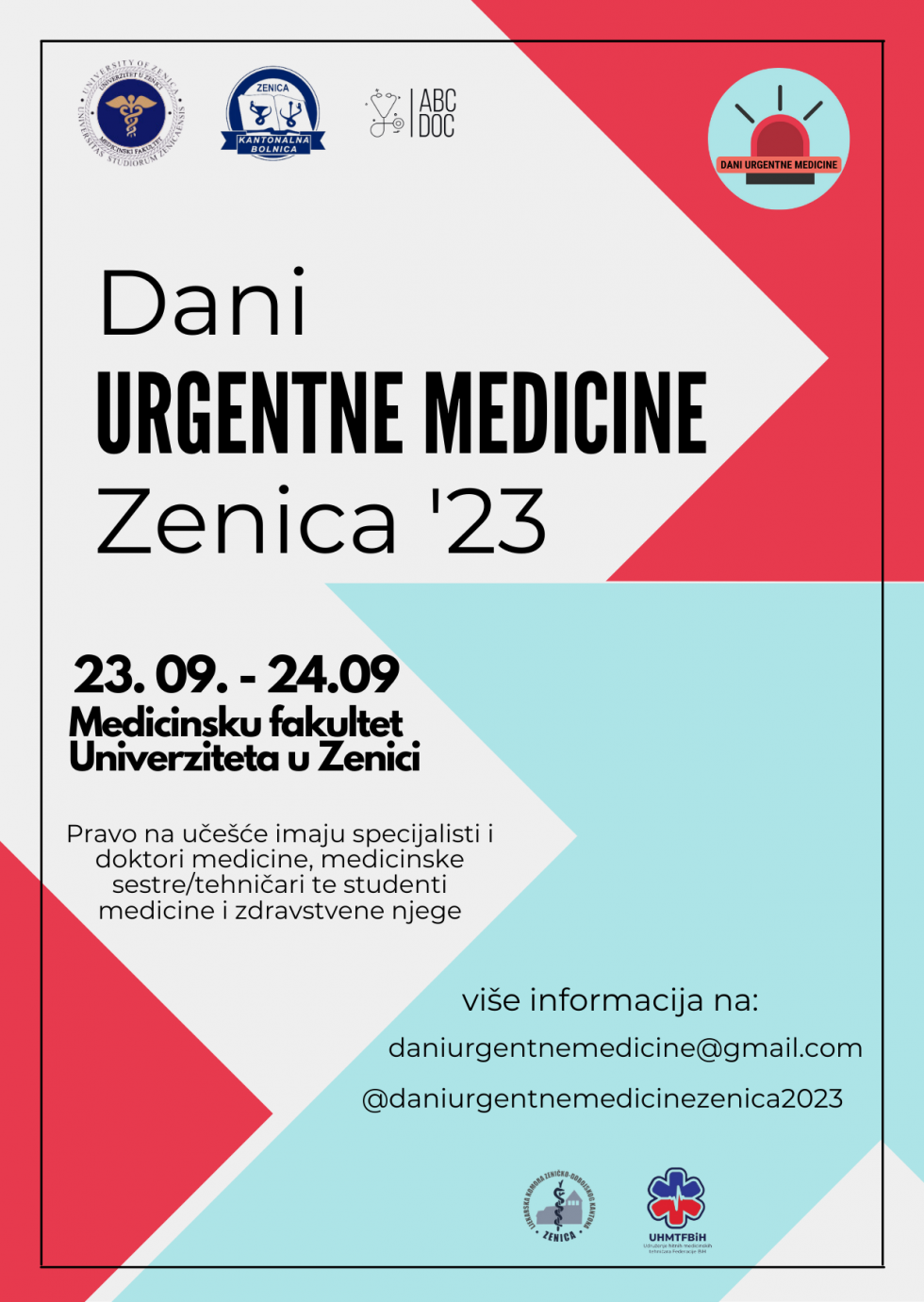 Dani Urgentne Medicine obuhvataju niz predavanja i radionica koje će se od 23. do 24. septembra 2023. godine, održati u inspirativnom okruženju Medicinskog fakulteta Univerziteta u Zenici. Ovaj događaj predstavlja priliku za sudjelovanje u nizu edukativnih predavanja i radionica, kojima će rukovoditi istaknuti stručnjaci iz oblasti hitne medicine i medicinskih nauka.