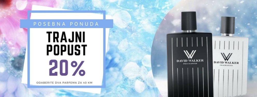 David Walker: 20% TRAJNI POPUST U DAVID WALKER PARFIMERIJAMA – Parfimerije David Walker uvode trajni popust od 20% na odabir 2 parfema u jednoj kupovini i to za “classic serije”(“Standard serije Black/White”).
