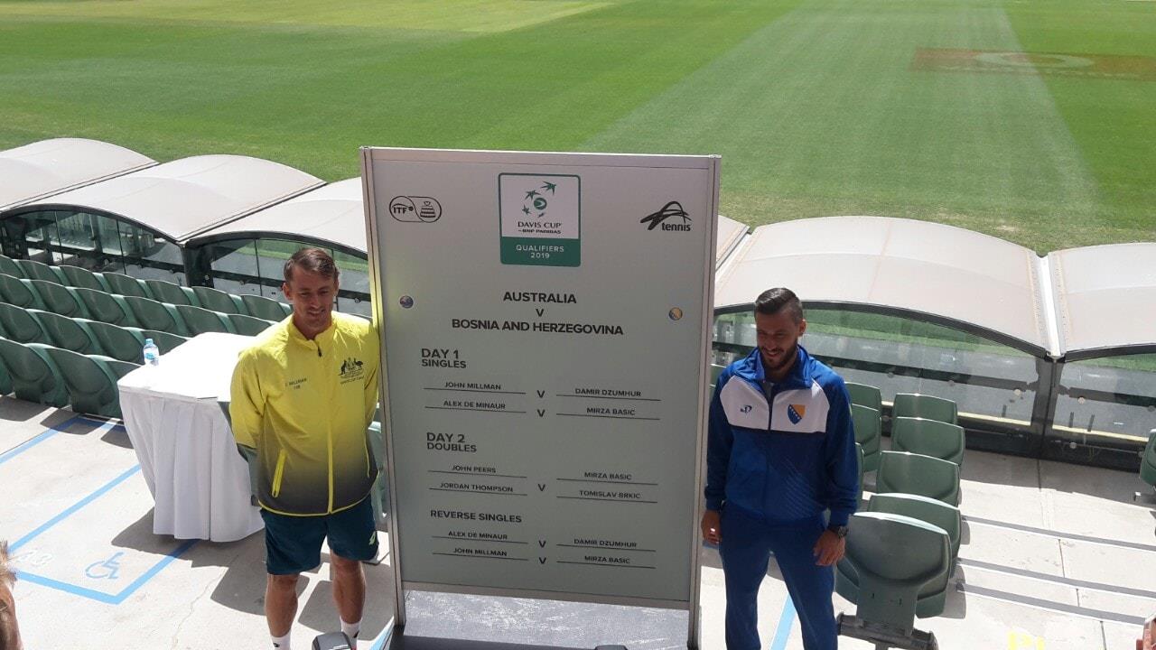 „Drago mi je da Damir igra prvi meč, znajući da ima dobru statistiku protiv Millmana, nadam se da će dobiti, što bi Mirzi omogućilo da u drugom meču igra agresivnije“, kaže Amer Delić, kapiten teniske selekcije BiH. Dubl je na programu u subotu 2.februara kada će se John Peers i Jordan Thompson suprotstaviti Mirzi Bašiću i Tomislavu Brkiću.