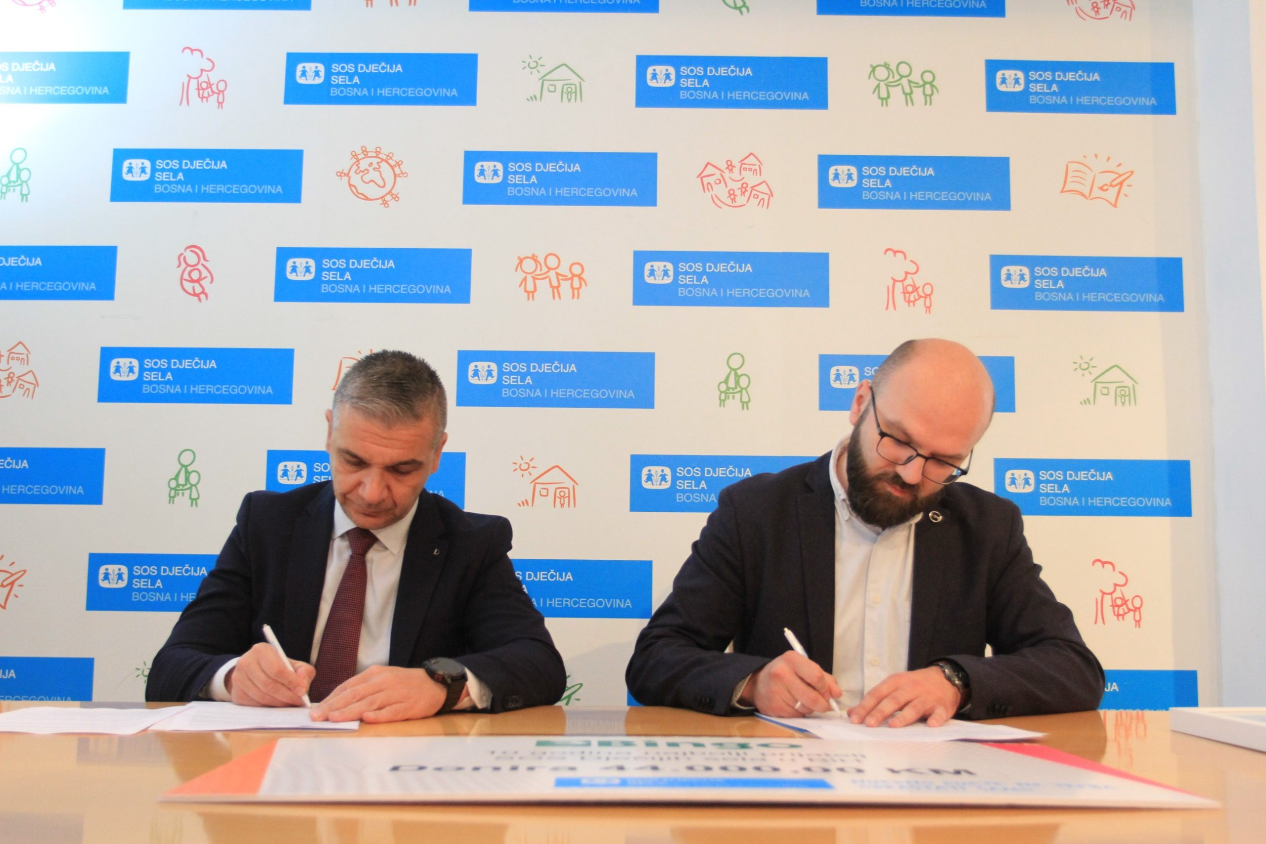 Obilježavanje desetogodišnje saradnje ozvaničeno je potpisivanjem ugovora o donaciji između izvršnog direktora za biznis operacije kompanije Bingo Edina Ibrahimovića i nacionalnog direktora SOS Dječijih sela BiH Malika Garibije.
