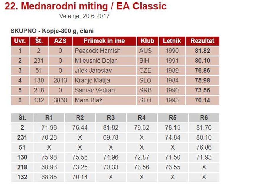 Dejan Mileusnić drugi u Velenju sa hicem od 80,10 metara – Naš najbolji bacač koplja, član AK Zenica, Dejan Mileusnić, učestvovao je večeras (utorak) na 22. Međunarodnom Atletskom Mitingu u slovenačkom Velenju. Mileusnić je imao 2. bačenu daljinu, postignutu u posljednjem šestom bacanju 80,10 metara.