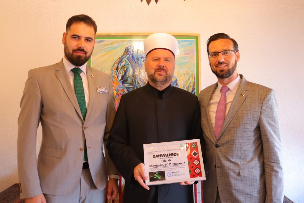 Kao znak zahvalnosti za dosadašnju podršku predstavnici BZK ”Preporod” Zenica muftiji Dizdareviću uručili su zahvalnicu i počasnu člansku kartu.