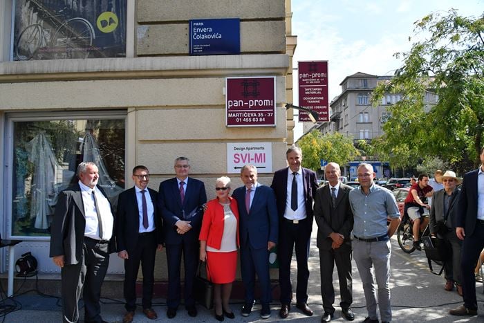 Gradonačelnik Bandić otkrio je spomen-ploču s natpisom Park Envera Čolakovića u Martićevoj ulici u Zagrebu, preko puta zgrade poznate pod nazivom Mali Vatikan.