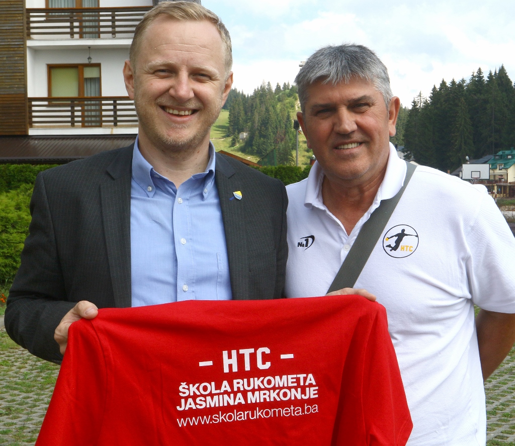 Delegacija Zeničko-dobojskog kantona posjetila Međunarodni rukometni kamp – Predsjedavajući Skupštine Zeničko-dobojskog kantona Jasmin Duvnjak i ministri u Vladi Kantona Mensur Sinanović i Nurđehan Šahinović posjetili su 7. Međunarodni rukometni kamp na Vlašiću HTC (Handball Talent Camp) kojeg organizira naš proslavljeni bivši rukometaš i aktuelni selektor kadetske reprezentacije BiH Jasmin Mrkonja.
