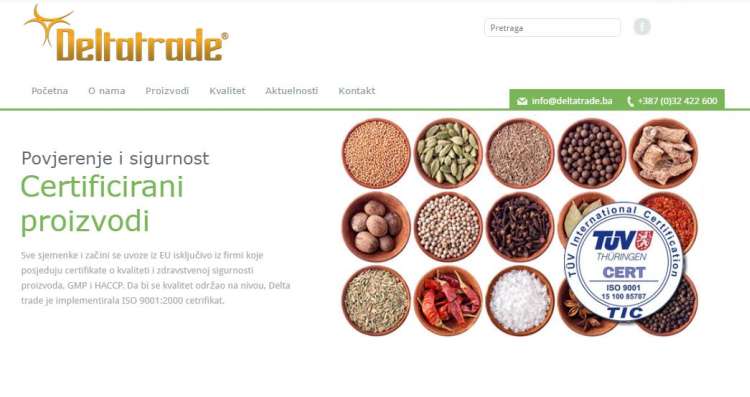 Delta trade: pogrešne informacije u objavi Agencije za sigurnost hrane i medijskim izvještajima – Danas je u medijima širom BiH plasiran niz pogrešnih informacija a koje se odnose na mažuran koji je naša firma uvezla u BiH. Neki su čak «uljepšali» naziv proizvoda pa ga nazvali mažuran-origano. Neki su bili još kreativniji pa su umjesto 100kg dodali jednu nulu da bi napravili još atraktivniju priču. Neki nisu ni naziv naše firme znali napisati pa su napisali Deltatrejd.
