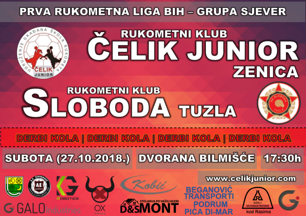 DERBI KOLA: Rukometaši Čelik Juniora bez poraza dočekuju Slobodu – Nakon izuzetnog otvaranja sezone i pet uzastopnih pobjeda u isto toliko utakmica, rukometaši ”Čelik Juniora” u subotu (27.10.) dočekuju rukometni klub ”Sloboda” iz Tuzle, a što ujedno predstavlja i derbi šestog kola Prve rukometne lige BiH.