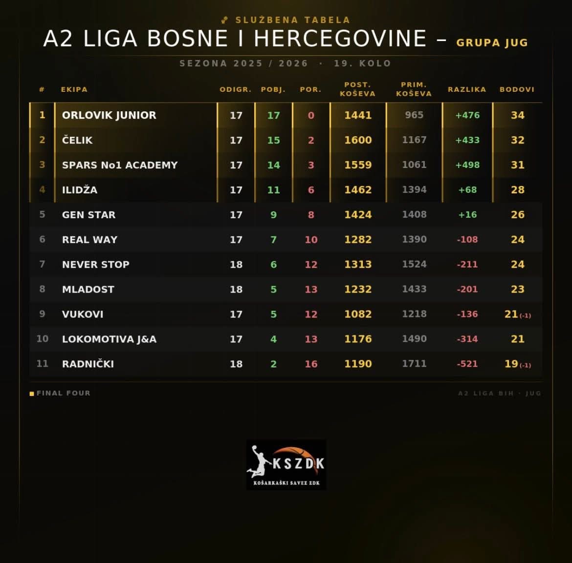 U subotu, 28. marta 2026. godine, od 13:00 sati u Areni „Husejin Smajlović“ u Zenici očekuje nas derbi kola – susret dvije prvoplasirane ekipe na tabeli, OKK Čelik Zenica i KK Orlovik Žepče.