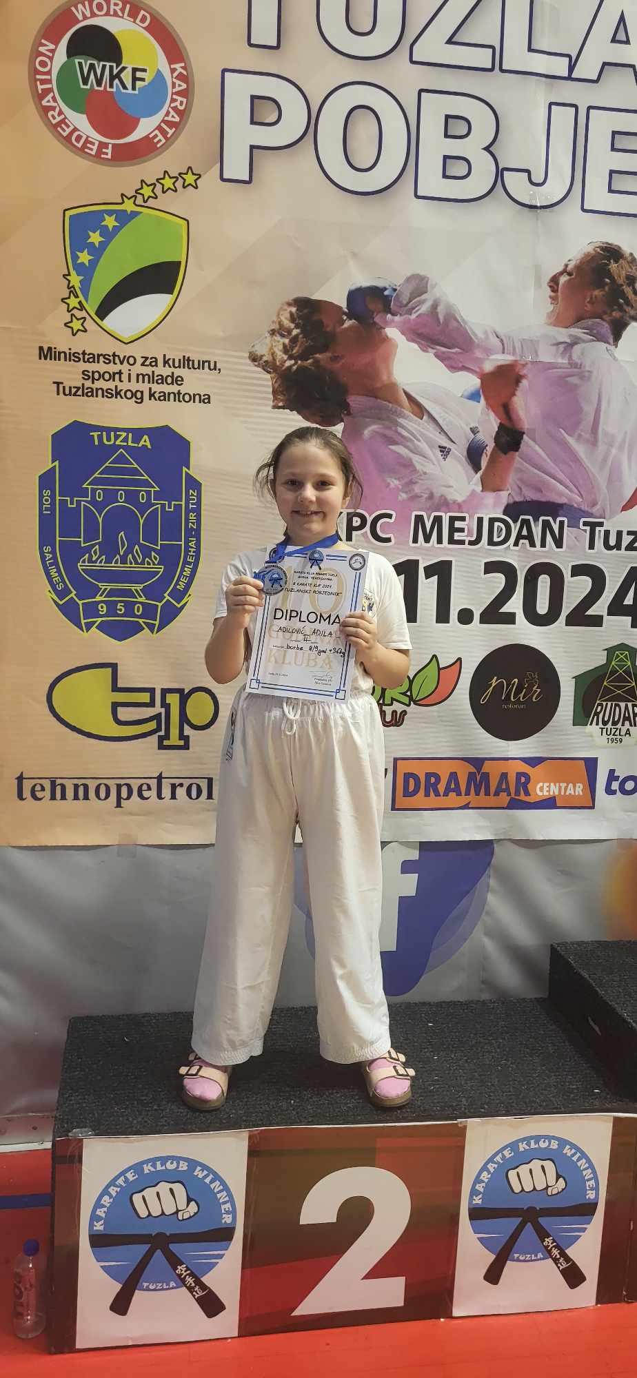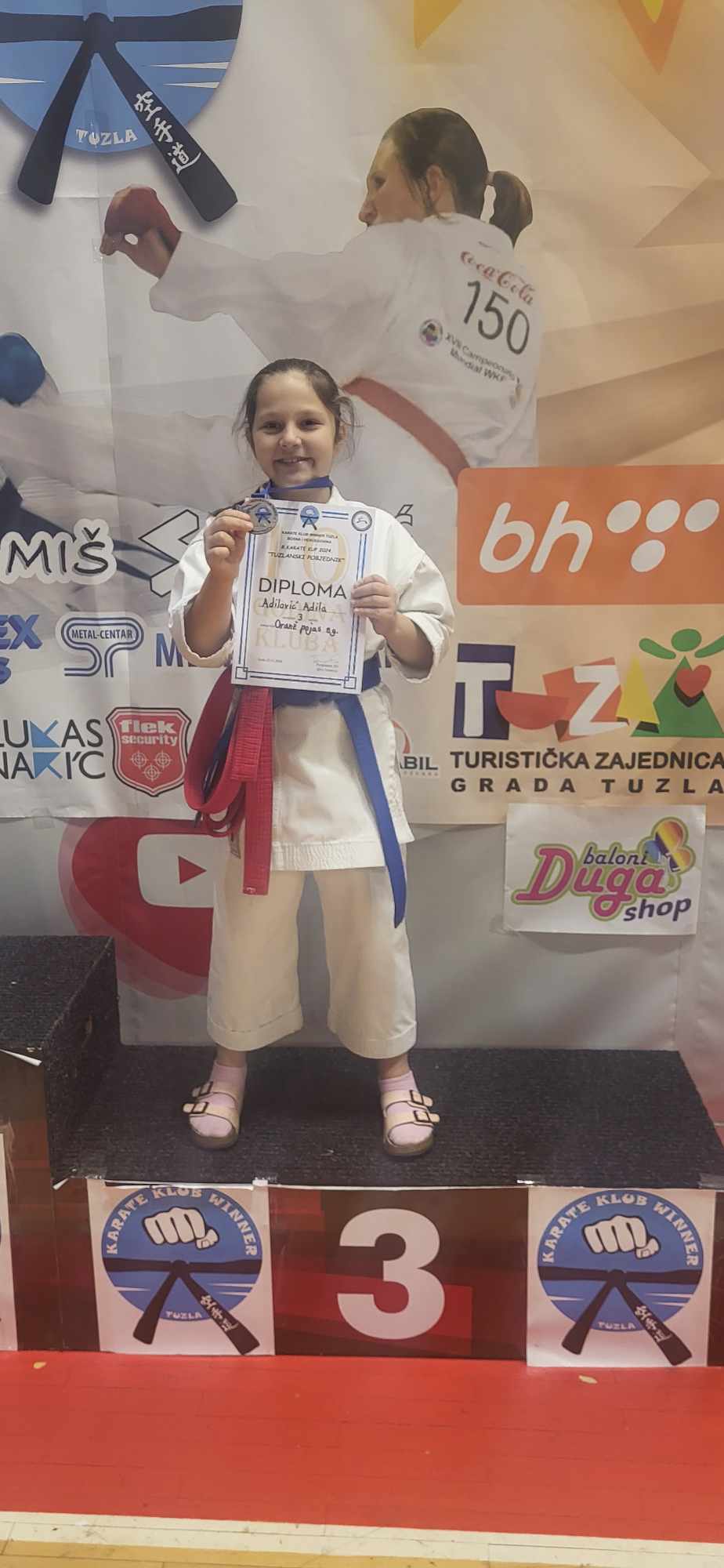 Posebno smo ponosni na našu Ejnu Bešo koja je u kategorijama kate osvojila dvije medalje, dok je u borbama osvojila prvo mjesto i zlatnu medalju. Moramo napomeniti da je Ejna u finalu protiv italijanke pobijedila rezultatom 10 : 01 i uspješno osvojila prvo mjesto i zlatnu medalju.
