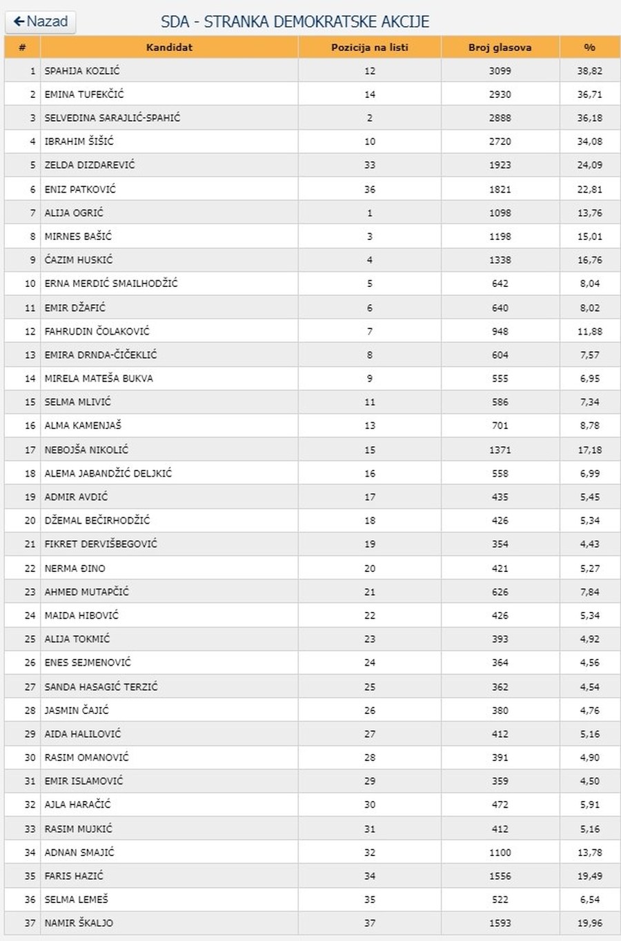 Donosimo i podatke kako su glasali Zeničani (za Skupštinu ZDK), te pojedinačno, po strankama, broj glasova unutar stranaka (samo za Zenicu)