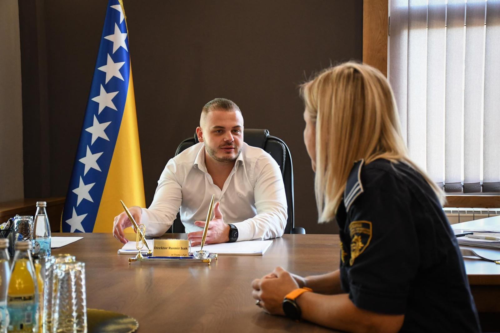 Rusmir Isak, direktor Kazneno-popravnog zavoda zatvorenog tipa u Zenici, upriličio je danas u svom Kabinetu prijem za Dijanu Sadikovsku, zatvrosku policijaku i evropsku prvakinju u džudu za veterane.