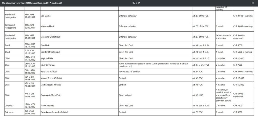 U obrazloženju odluke u FIFA dokumentu navedeno je da su Džeko, Bešić i Gilli kažnjeni zbog agresivnog ponašanja.