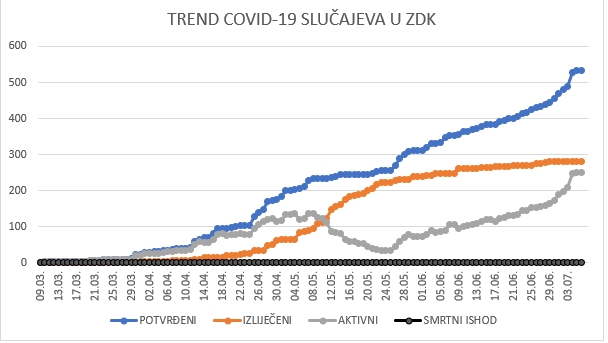 | Pregled stanja COVID-19 infekcije u ZDK za 06.07.2020. do 12:30 | ||
