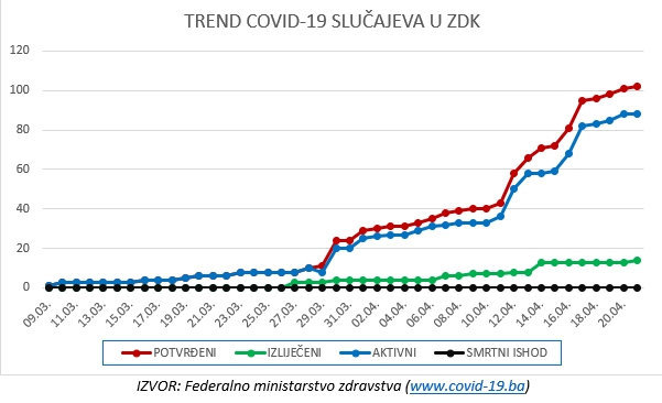 | Pregled stanja COVID-19 infekcije u ZDK za dan 21.04.2020. do 12:00 | ||