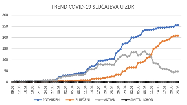 | Pregled stanja COVID-19 infekcije u ZDK za dan 23.05.2020. do 15:00 | ||