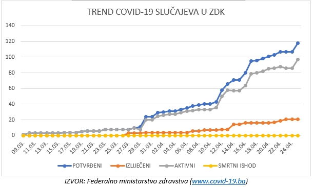 Dnevni COVID-19 bilten ZDK za 25. april – Pozivamo građane da se pridržavaju uputa i mjera kriznih štabova, a sve one koji obnašaju funkcije vlasti na angažman, solidarnost i službu narodu.