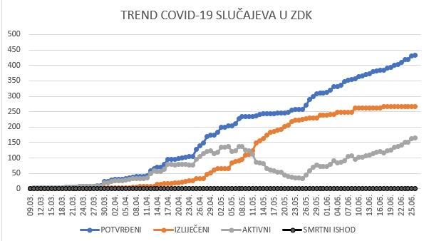 | Pregled stanja COVID-19 infekcije u ZDK za 26.06. 2020. do 12:30 | ||