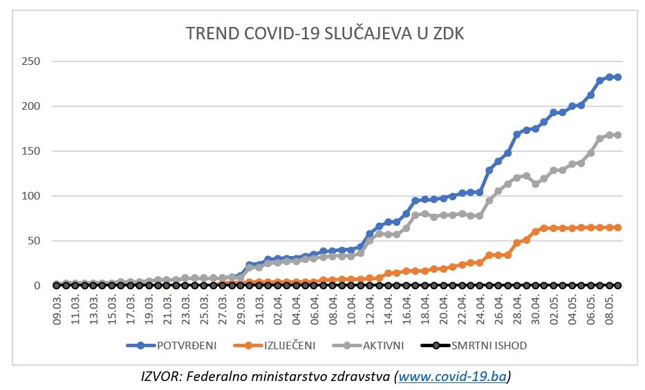 | Pregled stanja COVID-19 infekcije u ZDK za dan 09.05.2020. do 11:30 | ||