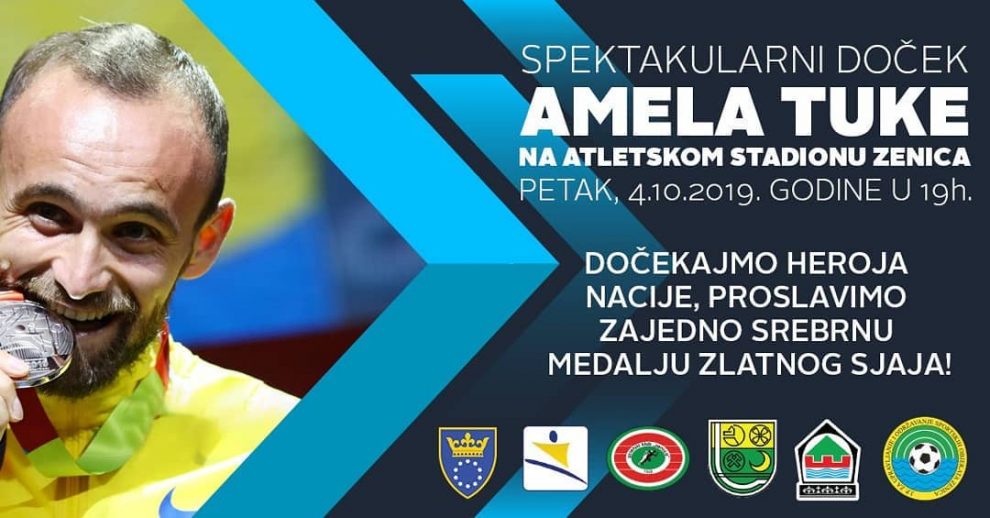 Prema Plakatu-Pozivu za doček Amela Tuke, dobijenom iz Atletskog kluba Zenica, organizatori dočeka u 19 sati na Atletskom stadionu Kamberovića polje u Zenici su, uz Atletski savez BiH i Atletski klub Zenica i Zeničko-dobojski kanton, općina Kakanj, Grad Zenica  i  Javno preduzeće za upravljanje sportskim objektima Zenica.