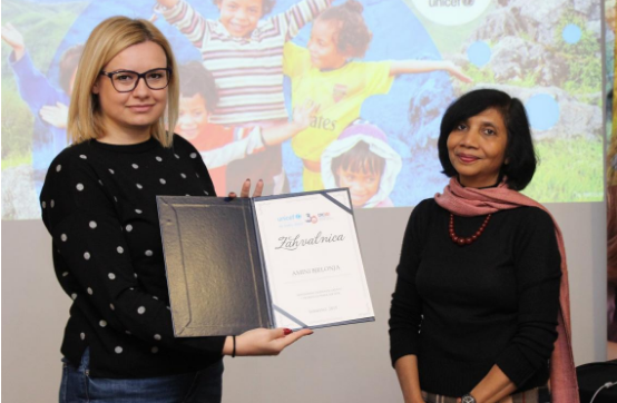 Priznanja i zahvalnice dodijelila je šefica ureda UNICEF-a za Bosnu i Hercegovinu dr. Rownak Khan koja se predstavnicama i predstavnicima medija zahvalila na vremenu i interesu koje odvajaju za bavljenje važnim temama vezanim za prava djeteta.