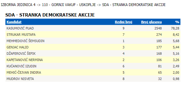 Naime, iako je osvojio najviše glasova u svom rodnom Gornjem Vakufu, za prolazak u Parlament u izbornoj jedinici 514 – Srednjobosanski i Zeničko-dobojski kanton više glasova su imali Šemsudin Mehmedović i Šefik Džaferović, pa je ukupnih nešto više od 12.000 glasova bilo NEDOVOLJNO da Kasumović postane državni parlamentarac, što bi ga možda tada “predomislilo” od prelaska u Zenicu i napuštanja stranke “u kojoj nikad nije bio”.