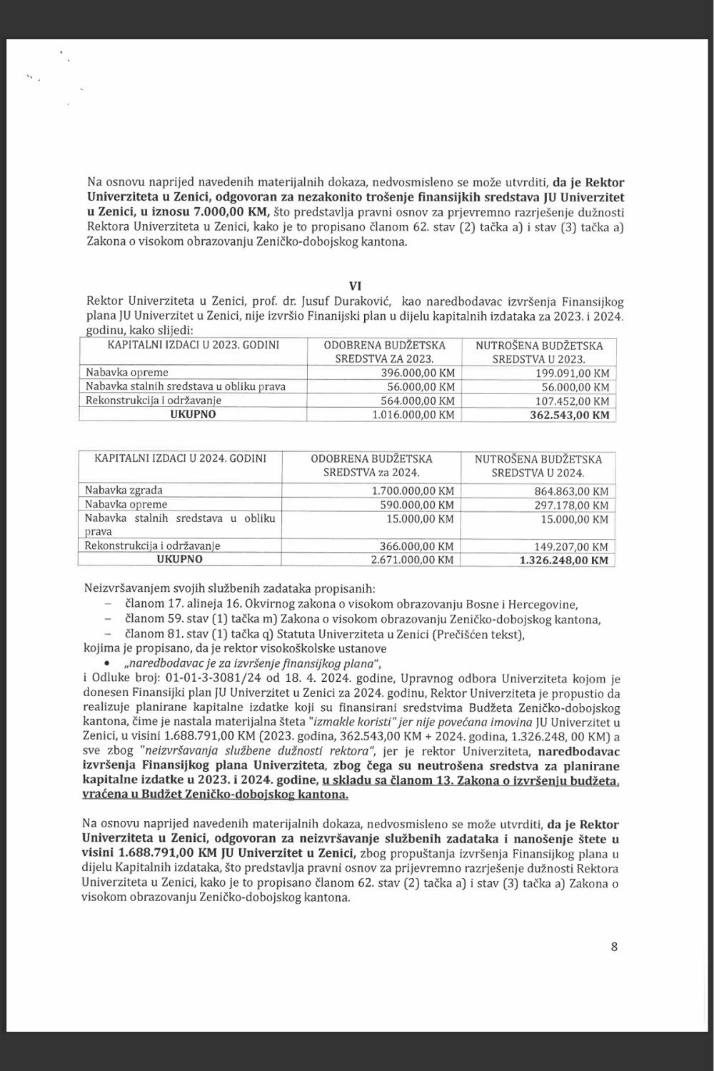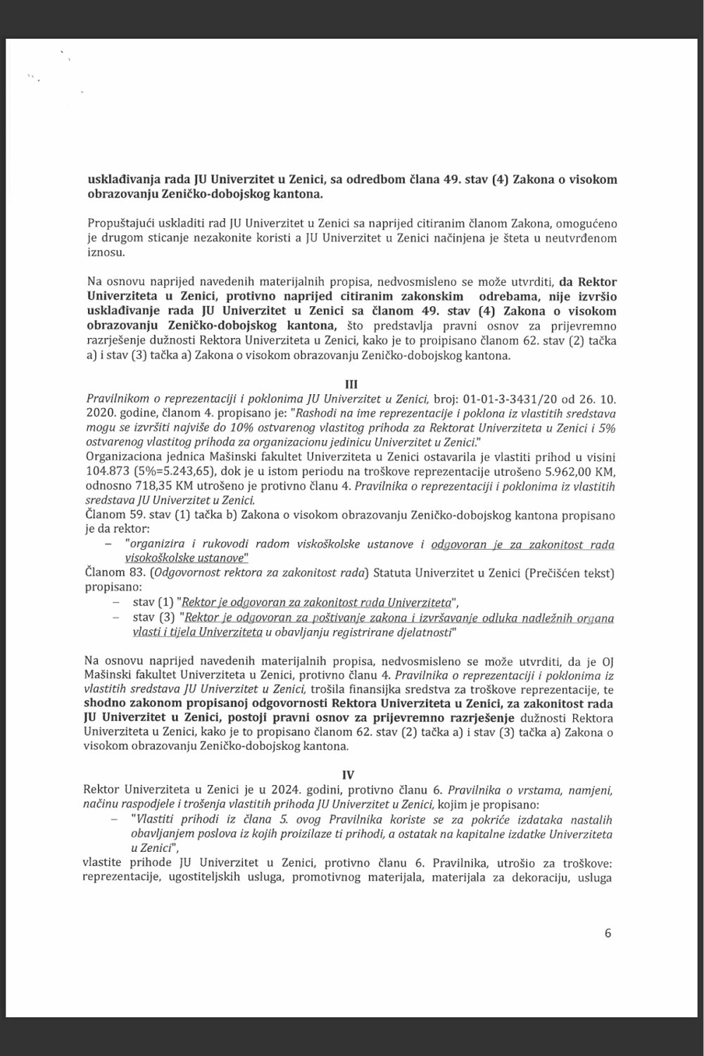 Zenicablog noć uoči glasanja Senata, koji će vjerovatno biti na strani rektora, donosi cjelokupan Zahtjev sa obrazloženjem svih Durakovićevih “grijehova” po UO.