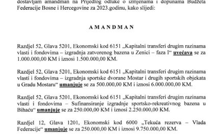 Usvojen je i Prijedlog izmjena i dopunama Zakona o izvršenju budžeta Federacije za 2023. godinu po hitnom postupku. Za ovu tačku glasalo je 49 delegata, devet je bilo suzdržanih, a deset protiv.