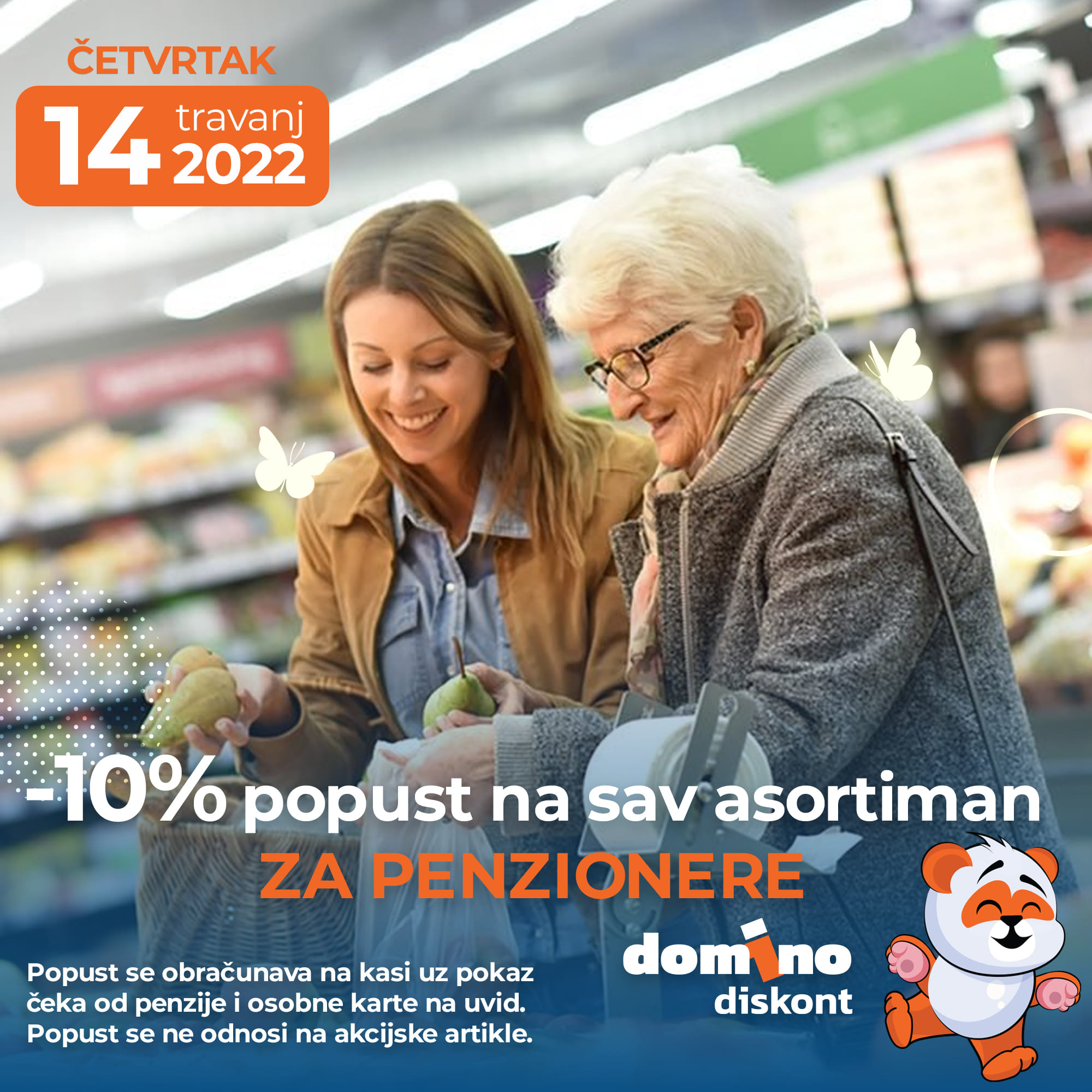 1.Popust se obračunava na kasi uz pokaz penzionog čeka i osobne iskaznice
