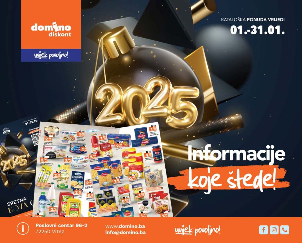 Od 01. do 31.01. u Domino Diskontu čekaju vas proizvodi po cijenama koje štede vaš budžet.
