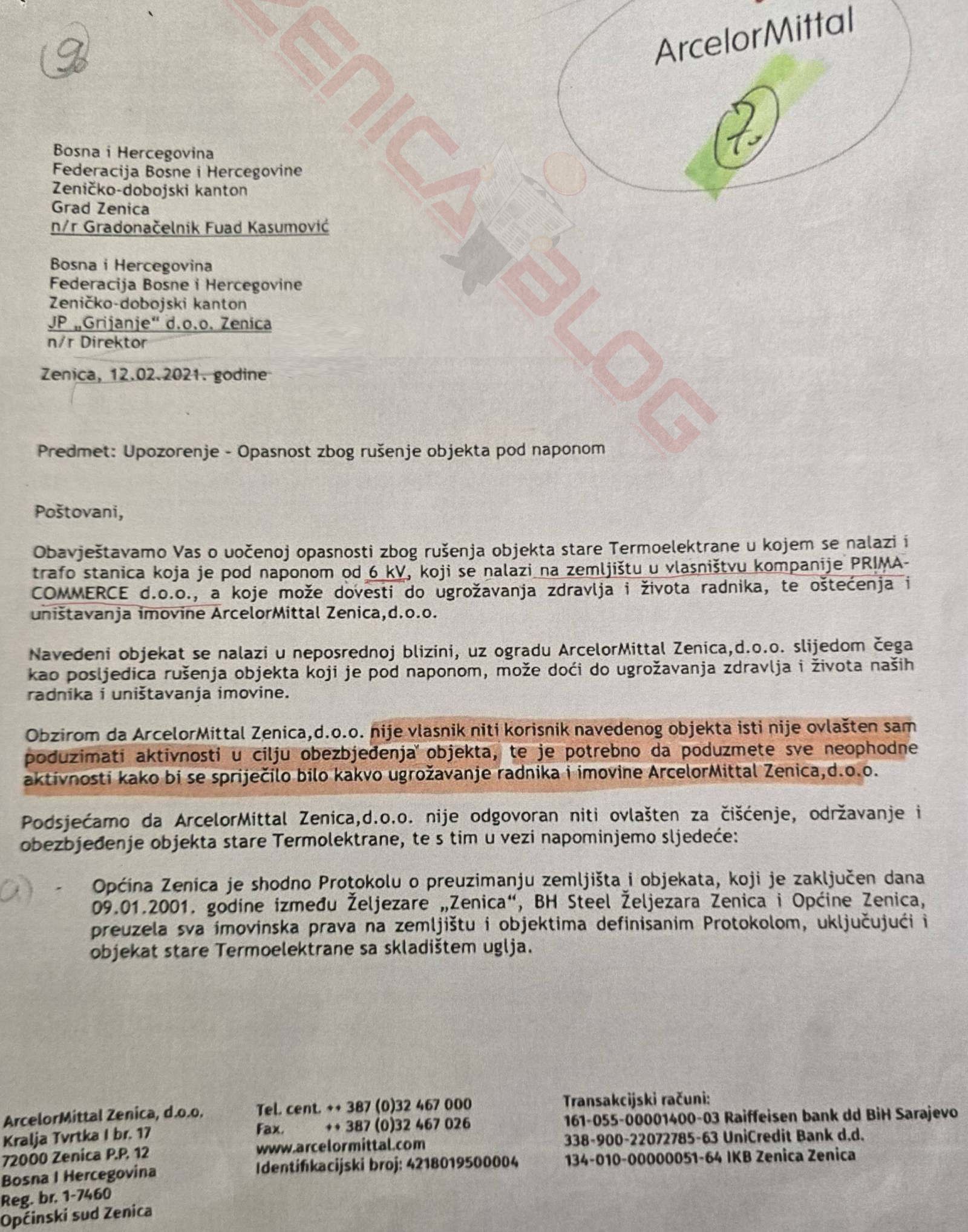 Zanimljivo je da su od tog objekta, pogotovo nakon nesretne pogibije mladića koji je protupravno ušao u elektro-postrojenje, dizali ruke i ArcelorMittal i Grijanje i Grad, o čemu posjedujemo validnu dokumentaciju. Naravno, kad je trebalo materijalizovati plac i objekte, prestalo je proglašavanje “nenadležnim”.